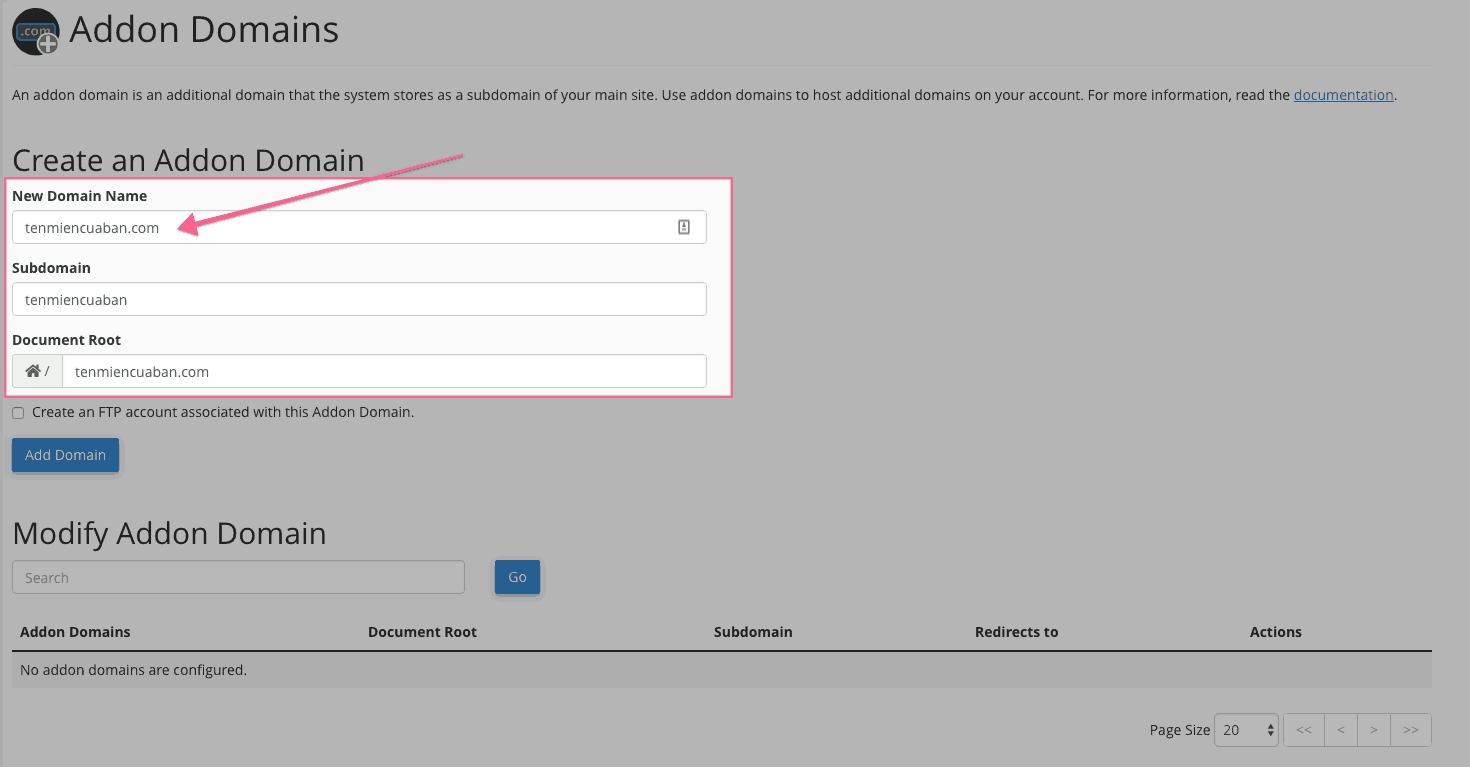 Bạn cần khai báo tên miền của bạn trong Cpanel và làm theo hướng dẫn bên dưới.